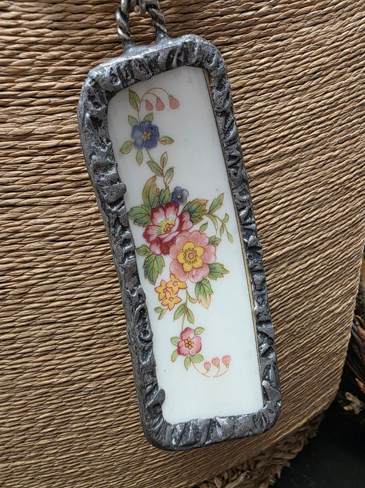 Broken China Embossed Silver Necklace