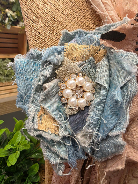 Fabric Hand-cut Floral Brooch - Distressed Grey