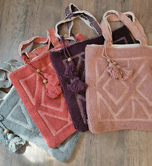 Cotton Chenille Knit Tote Bag w/ Tassels