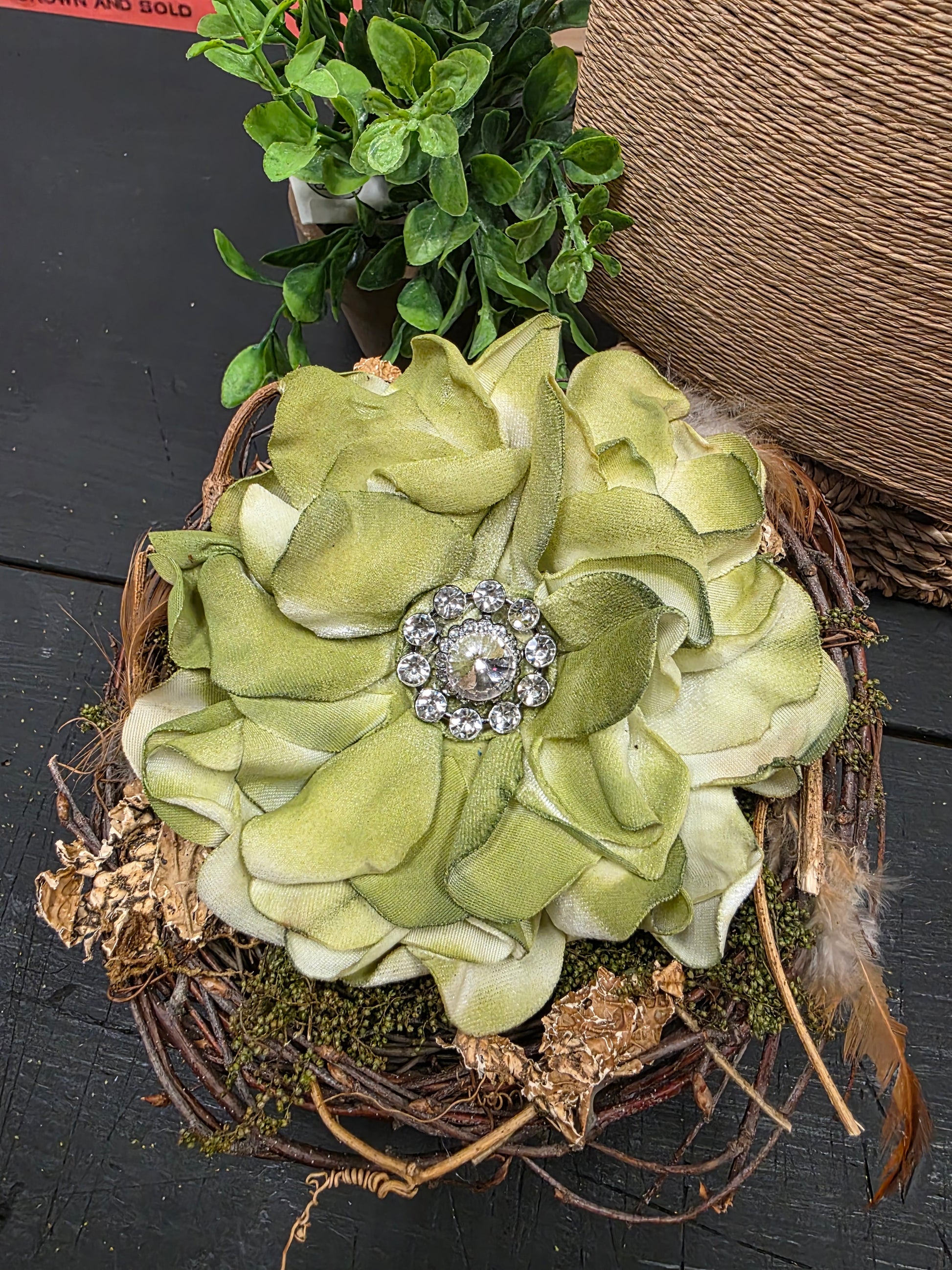 Fabric Hand-cut Floral Brooch - Distressed Green