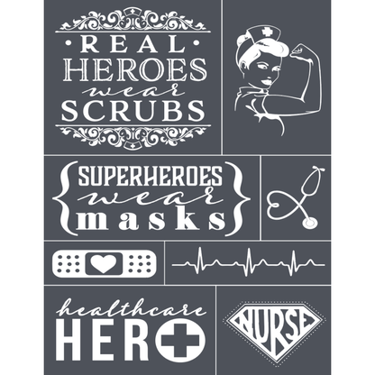 Real Heroes Wear Scrubs ~ Mesh Stencil 8.5"x11"