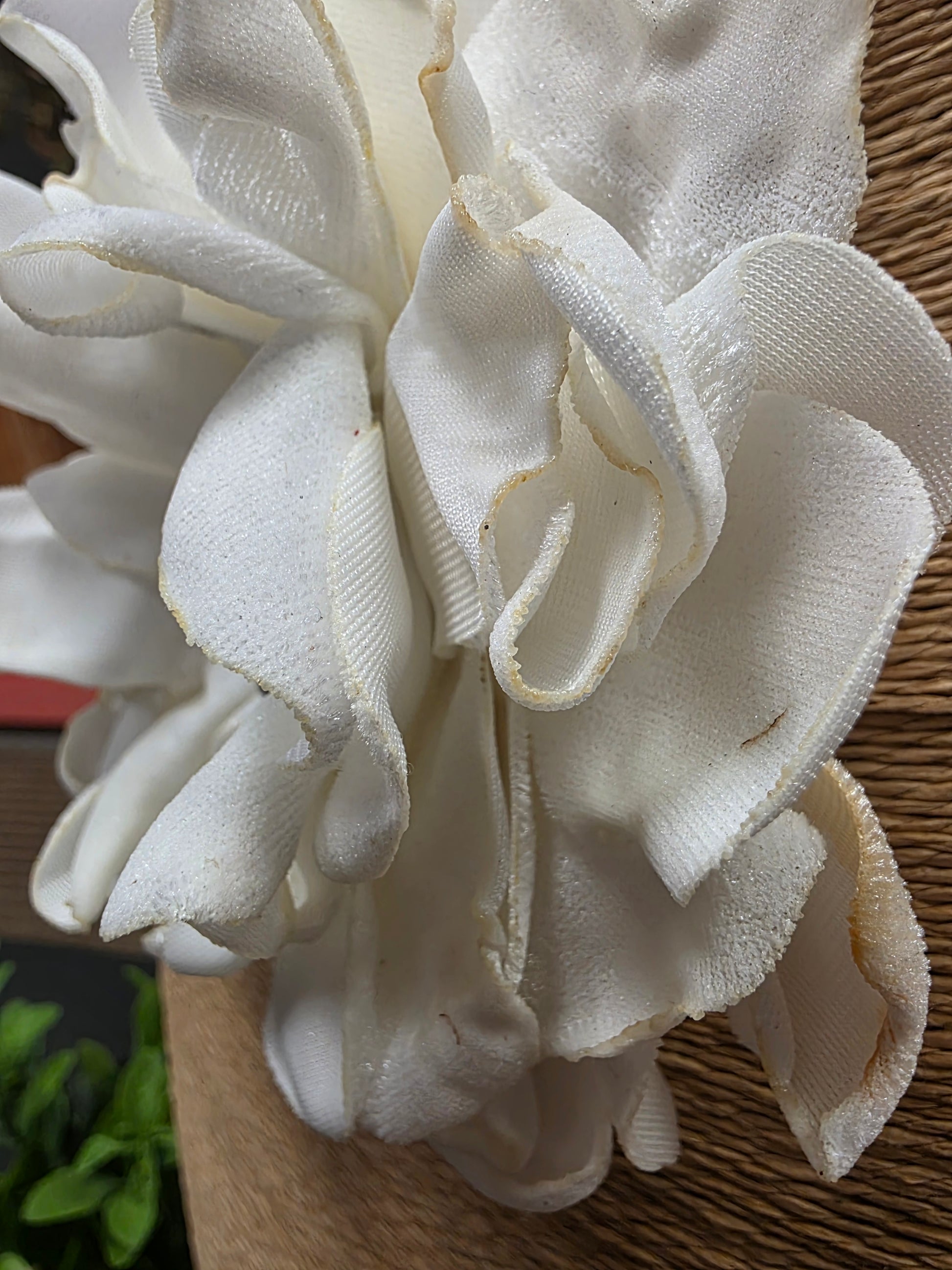 Handmade fabric flowers adorned with feathers and rhinestone centers are the bomb! They are beautiful on everything, hats, dresses, jackets, purses and more.