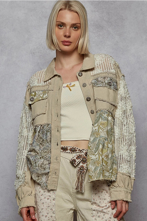 Floral Lace & Denim Shacket Powder Grey - POL