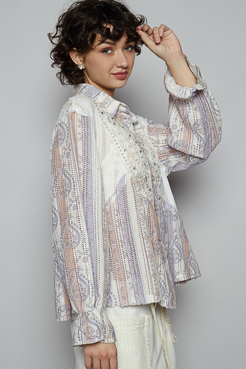 Floral Lace Eyelet Rhinestone Shacket - POL