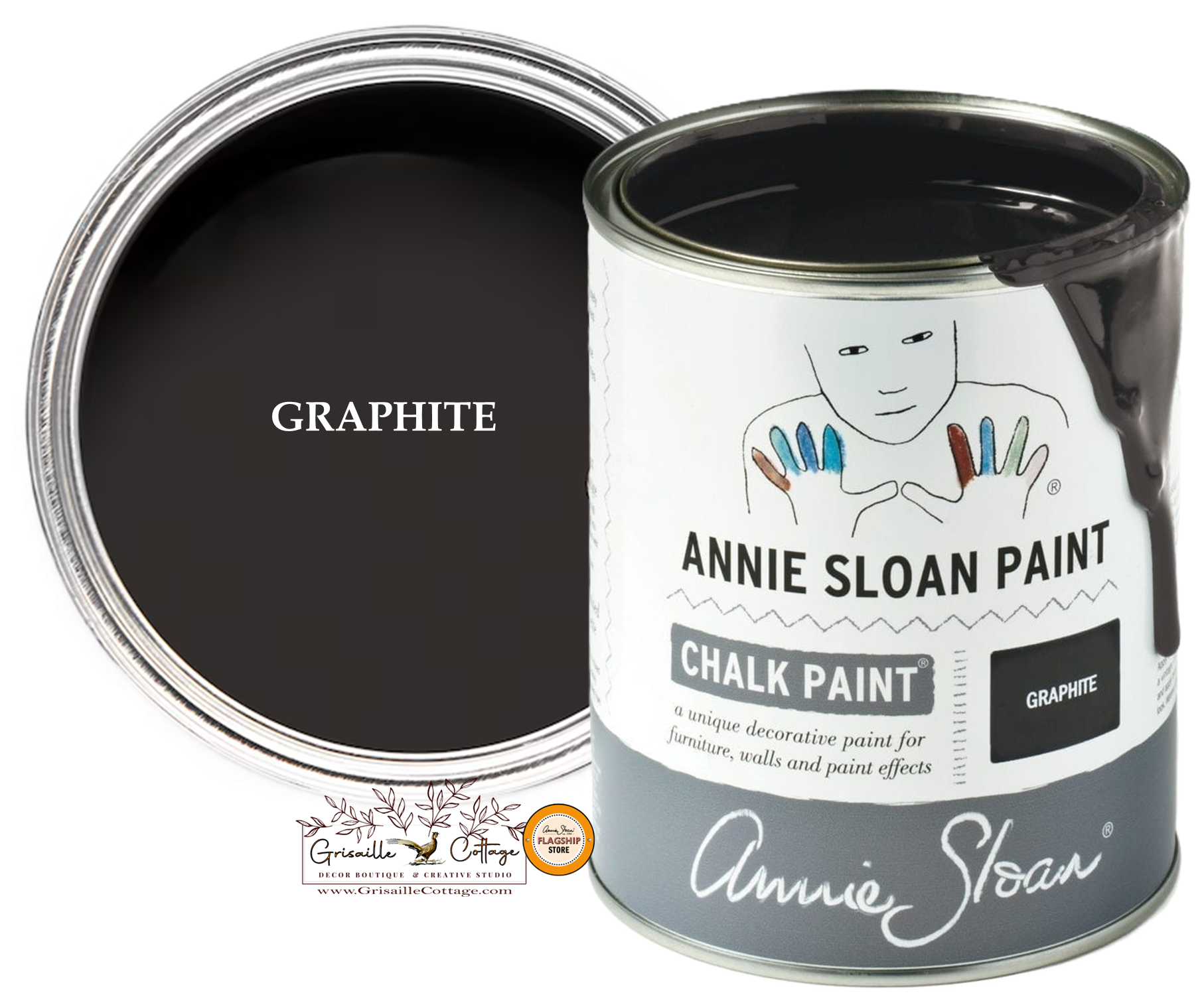 Graphite is a soft charcoal black Chalk Paint® colour inspired by Lamp Black, a traditional pigment. It works for many interiors from neoclassical to modern. When waxed, it becomes a beautiful black like dark slate.
