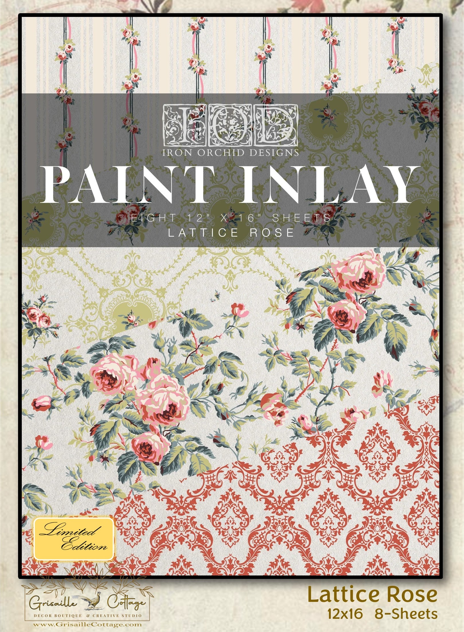 Lattice Rose - 8 Sheet, 12x16 Pad IOD Paint Inlay™