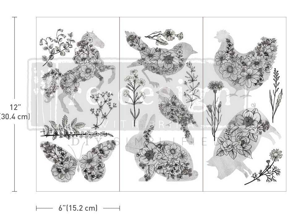 Scribbled Animals 6"x12" (3-Sheets) - Redesign Decor Mini Transfer®