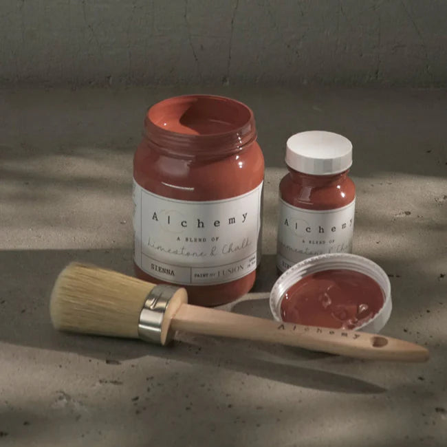Alchemy by Fusion is a chalk-style paint known for its flat, chalky finish and artistic flexibility. It’s highly pigmented and a little thicker in texture, highly blendable, easy to layer and distress, making it perfect for achieving unique, textured looks. Adding a touch of water or misting while painting is a common desire among painters and it works very well with Alchemy. Fusion Mineral Paint has a very high built-in durability and a modern, self-sealing finish, Alchemy allows for creative freedom by letting you choose your preferred topcoat or leave it as is for a soft, flat vintage look.
