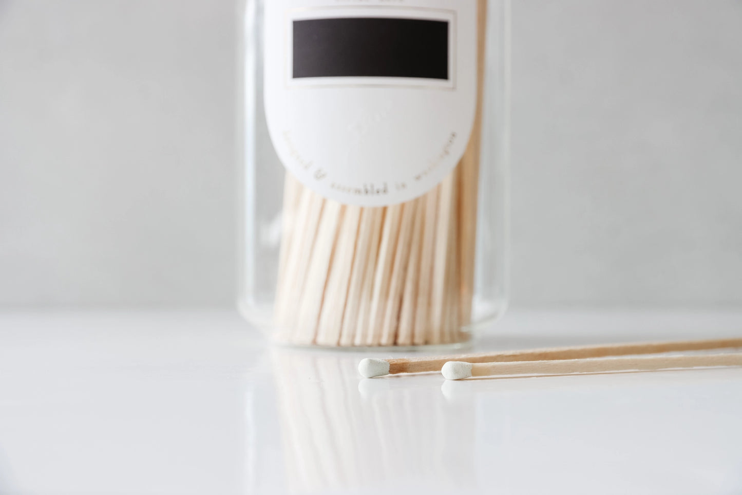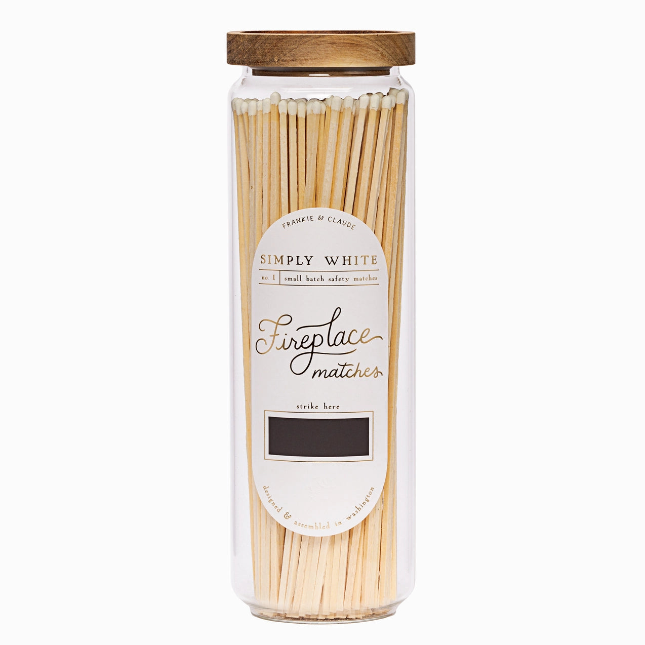 Add a touch of elegance to your decor with our Simply White Fireplace Match Jar. The classic white matches create a striking accent to any decor and Features a wooden lid and gold foil accents. This jar will bring both practicality & aesthetic appeal to your home.